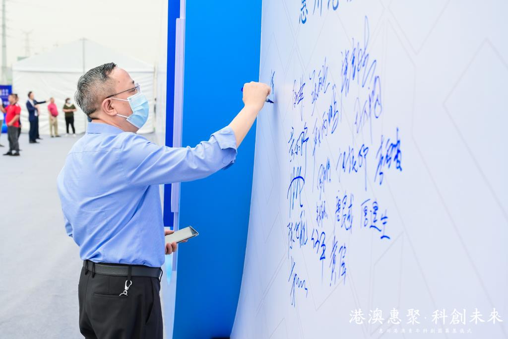 2022年11月16日,港澳青年科創(chuàng)園一期工程奠基儀式圓滿成功!總經(jīng)理席旭輝等人參加了儀式并簽名留念。