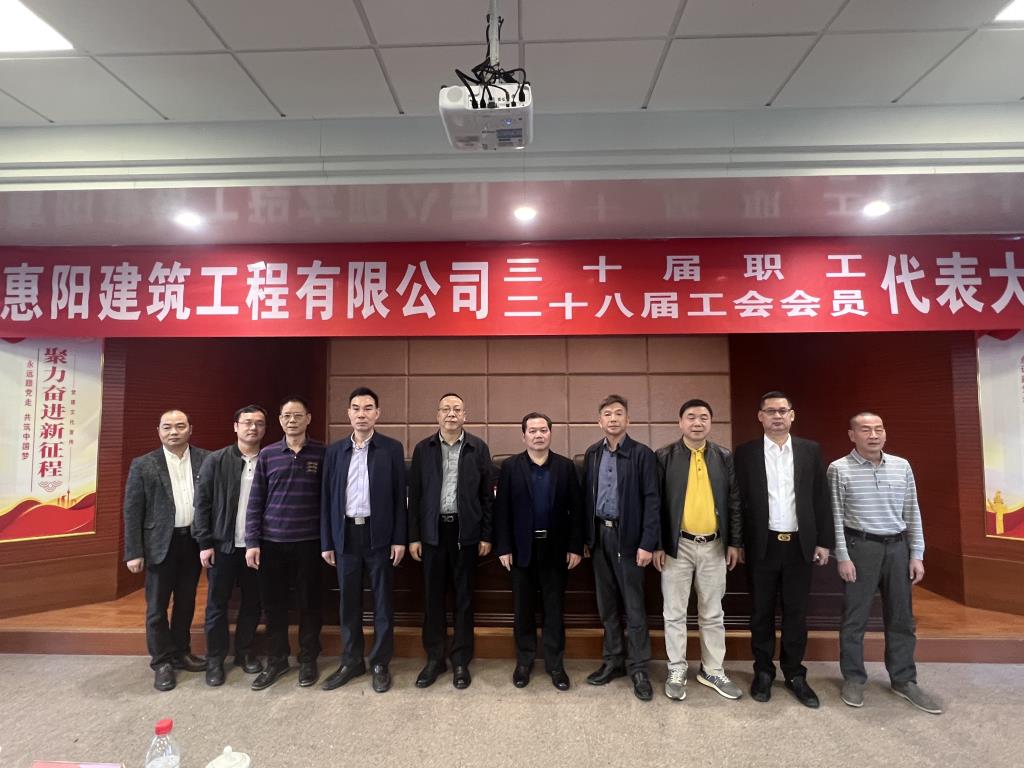 惠陽建筑工程有限公司2023年度第三十屆職工暨第二十八屆工會會員代表第一次大會于2023年3月31日上午隆重召開,本次會議嘉賓有:惠陽區(qū)國資事務(wù)中心黨委書記、主任嚴(yán)浩明同志;惠陽區(qū)總工會黨組成員、副主席陳光同志;惠陽區(qū)總工會黨支部副書記、機(jī)關(guān)經(jīng)委主任鐘耀輝同志;惠陽區(qū)城投集團(tuán)黨委副書記、總經(jīng)理劉奕明同志。
